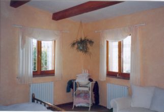 Das neu renovierte Landhaus verfügt über reizvolle, teils überdachte Terrassenflächen sowie ein gepflegtes Grundstück mit herrlichem mediterranem Baumbestand (viele Oliven, große Pinien, verschiedene Obstbäume...). Es befindet sich in ruhiger und idyllischer Hügellage mit sehr schöner Aussicht über die malerische Landschaft der Marken. Trotz der reizvollen Einzellage liegt das Haus nicht zu isoliert und verfügt über eine sehr gute Anbindung ans nahe Dorf, sowie über die Schnellstrasse ans Meer und den Flughafen Ancona.