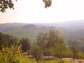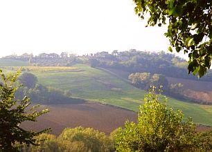 IN DE CAMPAGNA MET UITZICHT OVER DE HEUVELS, DE KORENVELDEN EN DE ZONNEBLOEMVELDEN.