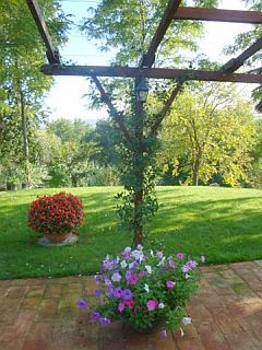 MOOIE AANGELEGDE TUIN MET AUTOMATISCHE REGENINSTALLATIE, VEEL SCHADUWRIJKE BOMEN, FRUITBOMEN, GROENTETUIN EN EEN TUINHUIS.