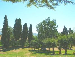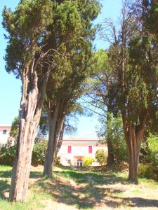 Der großzügige Freibereich ist parkähnlich angelegt und verfügt über traumhaften mediterranen Baumbestand mit alten Zypressen, Oliven, Oleander usw.