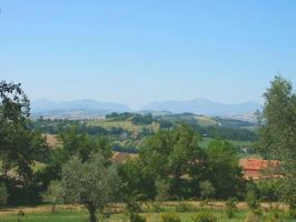 Ebenso die Lage des Anwesens ist sehr beeindruckend: auf einem sonnenverwöhnten Hügel gelegen überblickt man die liebliche Hügellandschaft der Marken bis weit in die Berge - mit den typischen Dorfsilhouetten am Horizont.