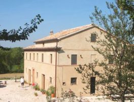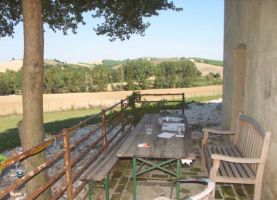 Der Außenbereich mit neu angelegtem Garten bietet reizvolle Aufenthaltsbereiche mit schöner Panorama-Aussicht über die typisch marchigianische Hügellandschaft.
