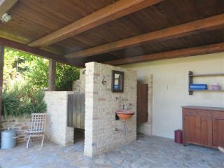 Das Haus ist sehr geschickt aufgeteilt und verfügt über großzügige Küche, Esszimmer, Wohnzimmer mit offenem Kamin, Studio mit Holzofen, 3 Schlafzimmer und 3 Bäder, sowie einen Weinkeller, Abstellräume, eine Dachterrasse, sowie überdachte Freisitze. Zusätzlich gibt es noch eine Dusche/WC am Pool und 4 großzügige Nebengebäude u.a. mit Pizzaofen, Carport, Gartenhaus, Pool-Haus und eine schattenspendende Pergola-Überdachung am Pool.