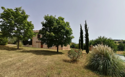 Reizvolles bewohnbares Landhaus aus herrlichem Naturstein, in romantischer Aussichtslage mit sehr schönem Grundstück und Pool.