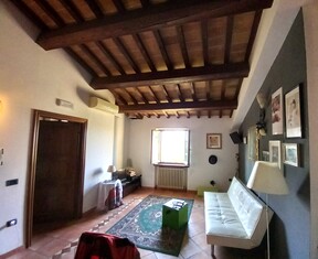 es handelt sich um eine sehr reizvolle und hochwertig renovierte Penthaus-ähnliche Wohnung innerhalb eines wunderschönen historischen Palazzo, mit 2 Schlafzimmern und 2 Bädern. Extrem ansprechende Lage mit herrlicher Aussicht, am Rande des centro storico eines beliebten, mittelalterlich geprägten Wehrdorfes mit sehr guter Infrastruktur.