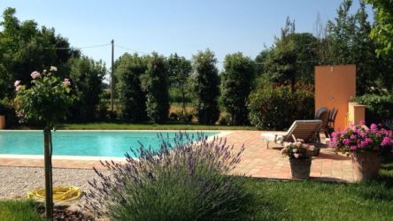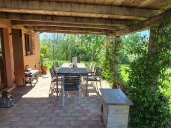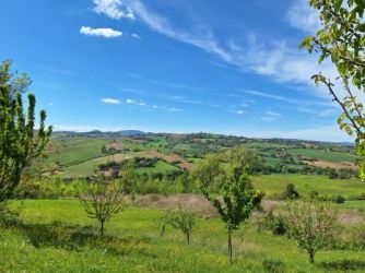 Umgeben sind die Gebäude von einem ca. 4.500 m2 großen, herrlichem Traumgrundstück in sonniger und ruhiger Lage mit malerischer Aussicht über die sanften Hügel der Marken.