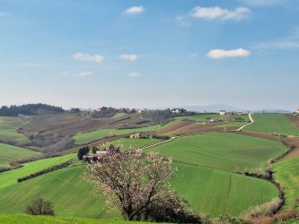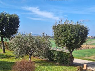 Die Lage der Immobilie ist wunderschön! Auf einer reizvollen Anhöhe gelegen, bietet sich eine atemberaubend weite Rundumsicht über die malerische Hügellandschaft, die Berge und teilweise bis zum Meer. Besonders reizvoll ist der Blick auf den nahe gelegenen Ort Corinaldo, welcher für seine beeindruckende Architektur und hervorragende Infrastruktur bekannt ist. In allen Himmelrichtungen sieht man schöne Silhouetten vieler Dörfer am Horizont, umgeben von den typischen sanften Hügeln der Marken. Die Anbindung nach Corinaldo und ans nahe Meer bei Senigallia, mit seinen berühmten Samtstränden, ist sehr gut.