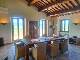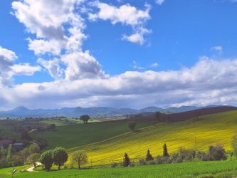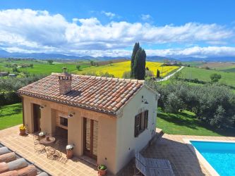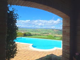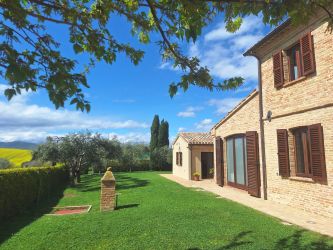 Das Anwesen befindet sich in ruhiger und sonniger Top-Lage, mit wunderschöner Aussicht über die malerische und sanfte Hügellandschaft der Marken, nur wenige Minuten von bezaubernden Dörfern und ca. 26 km von den bekannten Stränden bei Senigallia entfernt.